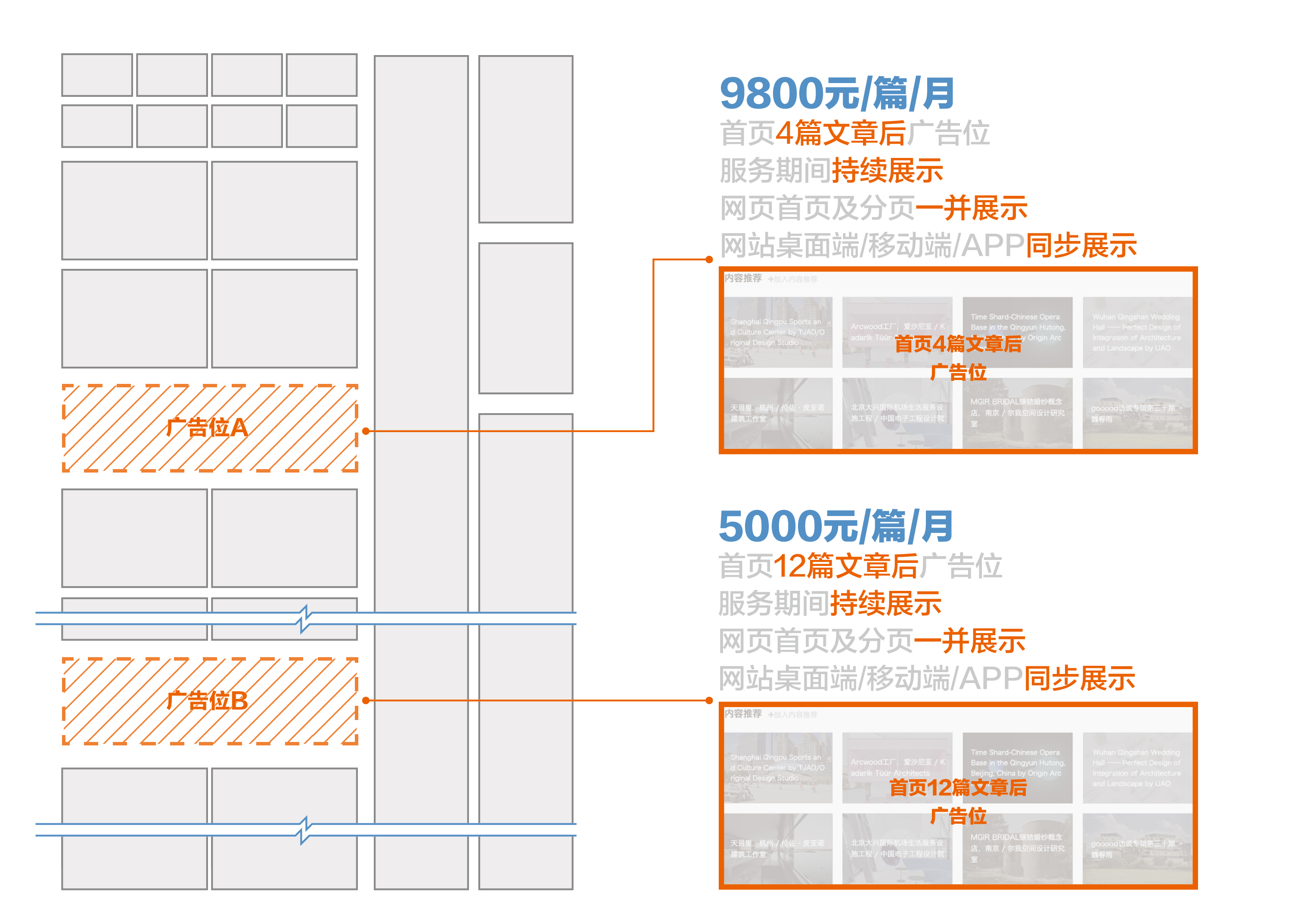 5000元/篇/月内容推荐套餐B (出现在网站首页及各分页12篇文章后的广告位,共8个广告,请选择其一,每次刷新随机分配位置)